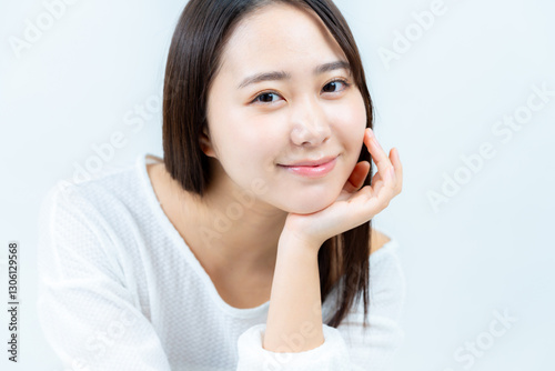 cosmetic, beauty, smile, woman, missy, portrait, room, skincare, diet, health care, indoor, health, lovely, face, skin, epilation, young, beauty, cheek, sweet, smile, smile, indoor, light, girl, pretty, hand, people, japanese, black hair, long hair