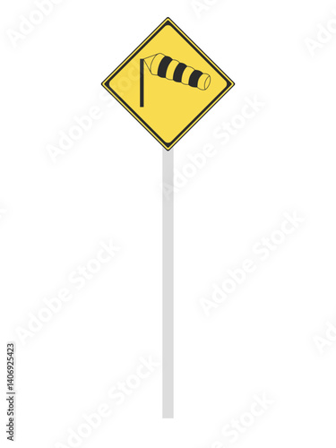 ポール付き標識の単品イラスト 横風注意