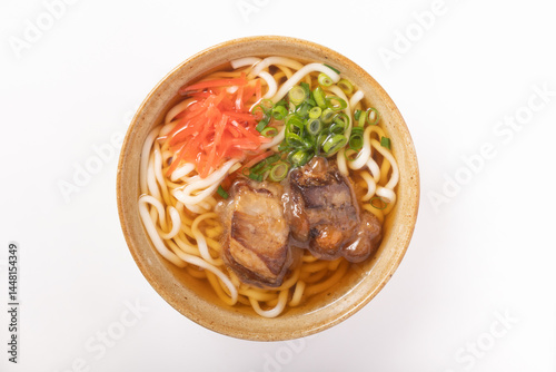 speciality, okinawa, soba, dish, japan, buckwheat, green onion, noodle, image, material, white background