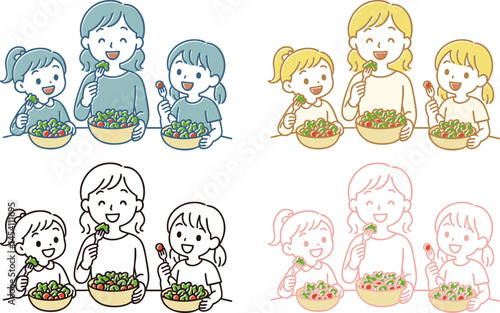 salad, family, family, food, smile, people, children, girl, sweet, vector, illustration, meal, mother, health, fresh