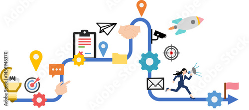 aim, achievement, roadmap, illustration, business, suit, mountain, climb, milestone, goal, starting, career woman, ol, flag, flag, sport, symbol, silhouette, blue, icon, concept, signs, design, time, web, network, communication, buttons, arrow, future, grow, success, appeal