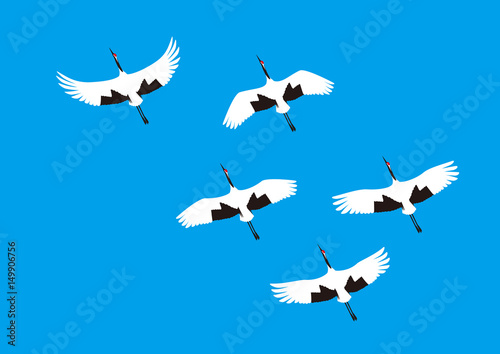 crane, crane, wing, wing, fly, fly, japan, hokkaido, bird, red, nature, sum, flying, sky, blue skies, flock, sunny, winter, background