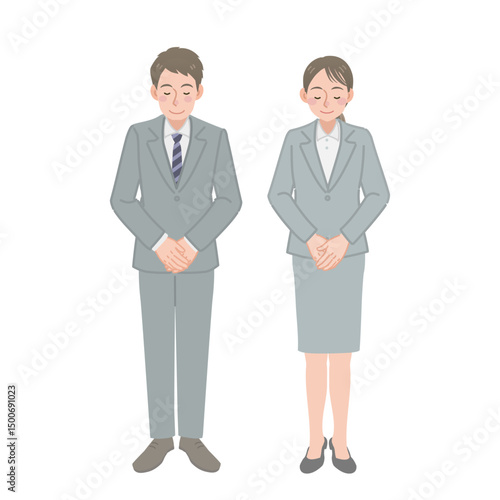 bow, businessman, illustration, man, woman, payback, greeting, bow, 30s, vector, career woman, suit, ol, people, young, work, business, recruit, japanese, work, job hunting, staff, white background, salaried employee, corporation, flat, two people, set, please, clean, courteous, smile, earnest