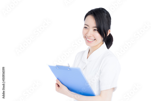 woman, nurse, nurse, nurse, doctor, hospital, medical care, labcoat, inquiry, exam, hygienist, dental assistant, assistant, work, occupation, labor, woman, black hair, sweet, beauty, people, japanese, portrait, model, asian, white background, copy space, smile, appealing