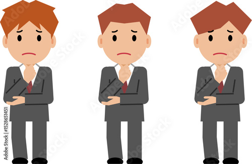 icon, people, business, man, work, hesitate, unrest, apprehension, alarmed, worrying, alarm, trouble, thinking, embarrassment, puzzled, corporation, work, businessman, man, pose, suit, short hair, shortcut, lad, vector, illustration, set, sweet, pretty, shirt, employee, salaried employee, corporate, labor, grey, material