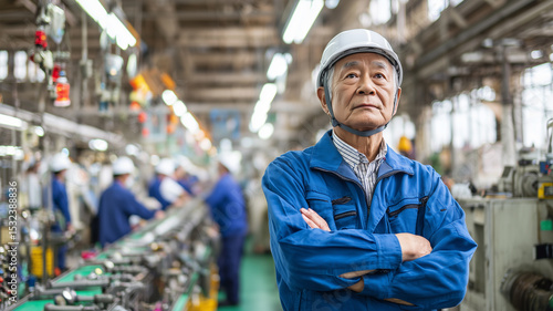 factory, japanese, working man, expert, director, management, training, helmet, lighting, leading, observe, chief, real, calm, industry, manager, expression, neatness