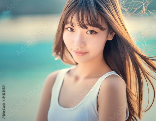 woman, people, young, portrait, japanese, sweet, summer, pretty, copy space, beauty, sea, cosmetic, beauty, open air, lovely, clean, alone, smile, asian, nature, light, girl, beach, waist up, sky, travel, lifestyle, wind, relax, sunset, beach, skincare, sunny, hair