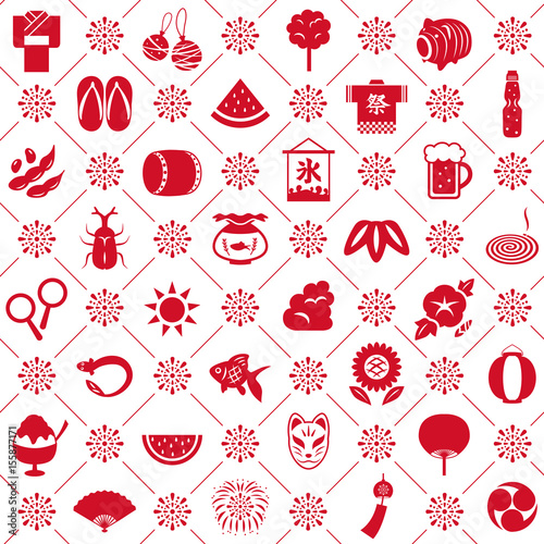 日本の夏 シームレスパターン背景