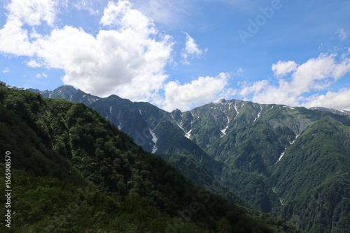 landscape, view, mountain, sky, cloud, white horse, panorama, panoramic, white, blue, summer, climb, hike, trek, nature, depression, alps, forest, rock, wood, blur, peak, tour tourism, japan