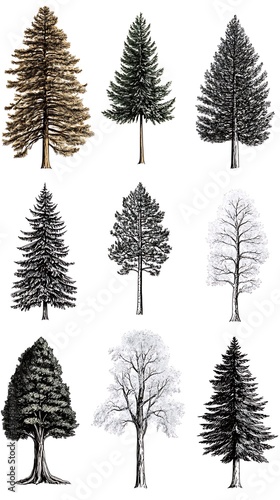 wood, conifer, broadleaf tree, pine, wood, forest, silhouette, illustration, illustration, monochrome, black-and-white, bush, nature