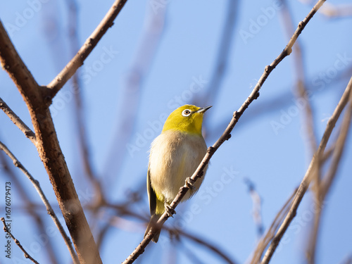 bird, sky, blue skies, winter, nature, wood, wildlife, yellow, animal, blue, small, beak, wing, wicker, pigmentation, forest