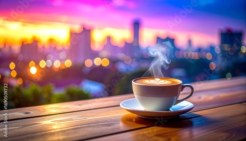 coffee, cup, cup, mug, coffee, landscape, highrise, nightscape, view, mystic, photogenic, copy space, pretty, lovely, cool, art, artistic, sunset, wallpaper, cool, porch, open air, espresso, cappuccino, up, drink, table, aroma, eatery, colourful, skyscraper, city centre, condo, cloud, caffeine, hot