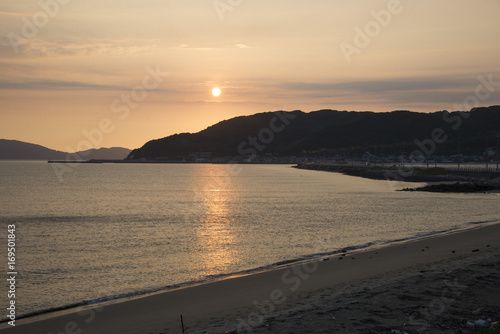 sunset, sea, beach, sky, water, landscape, sun, cloud, nature, lake, coast, orange, island, wave, tonight, mountain, blue, summer, travel, sand, calm, morning