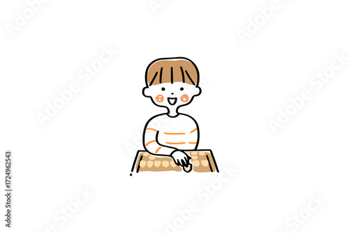 笑顔で将棋を指す男の子