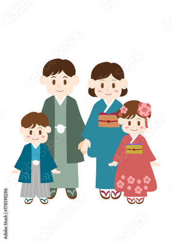 new year, family, japan, illustration, kimono, vector, father, mother, children, family, sweet, greeting, jan, girl, boy, event, people, family, father, mother, father, mother