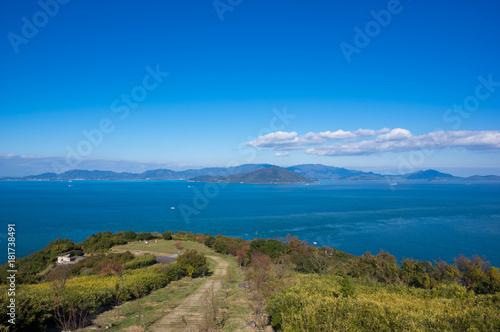 seto inland sea, boat, sea, sunny, blue skies, sky, tide, shikoku, landscape, fall, cloud, wood, island, sea, copy space