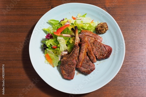 lamb, meat, mouton, dish, gridiron, salad, spice, mustard, meal, food