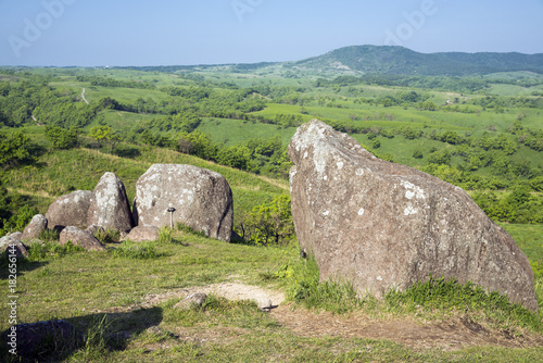 hill, rock, rock, boulder, green, tourist attraction, showplace, green, sky, blue, sunny, nature, natural, landscape, view, may, may, national park, japan, asia