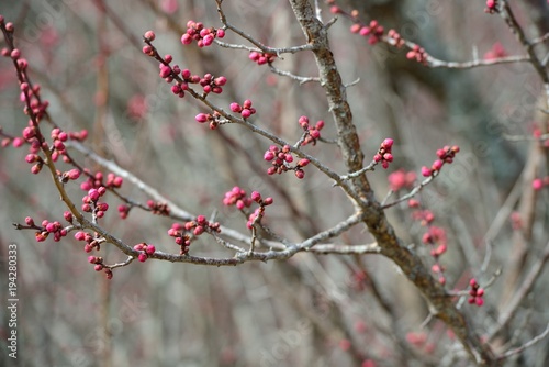 wood, spring, nature, branch, winter, snow, flower, flowering, red, cherry, pink, white, cold, plant, season, frost, berry, bloom, ice, sky, bud, bush, early spring, spring