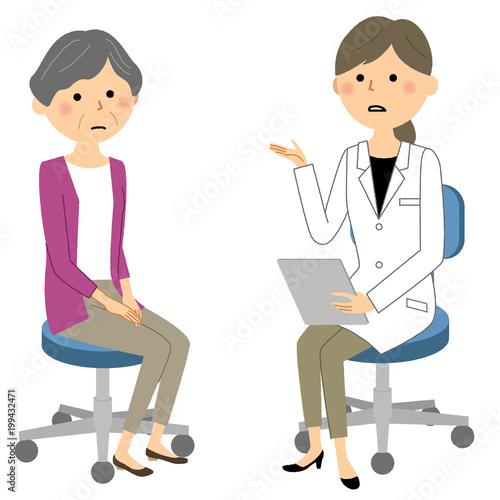 illustration, illustration, japanese, people, doctor, doctor, apothecary, teacher, doctor, labcoat, hospital, clinic, medical care, study, occupation, work, white background, young, woman, vector, exam, inquiry, counseling, care, treatment, prescription, health, pharmacy, inspection, version, consultation, conversation, trouble, unrest, marode, aged, aged, patient, grandmother, grandmother, babushka, nanny, ward