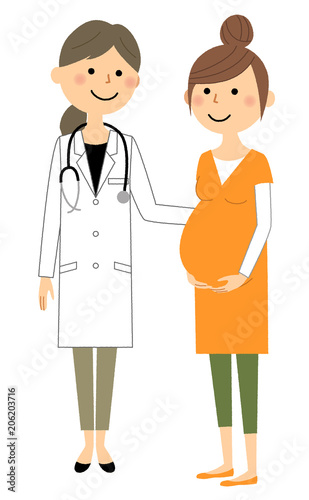illustration, illustration, japanese, people, woman, mother, homemaker, mother, mother, mother-to-be, pregnancy, birth, happiness, maternity, raise, baby, maternity, happy, children, stomach, white background, vector, smile, doctor, doctor, teacher, doctor, labcoat, hospital, clinic, medical care, exam, inquiry, patient, inspection, version, conversation