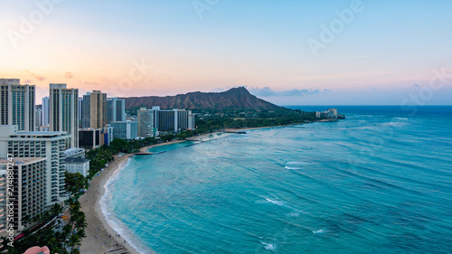 hawaii, honolulu, waikiki, oahu, diamond head, beach, hotel, resort, sea, beach, beach, america, morning, sunrise, leisure, person, showplace, summer, mountain, building, journey, travel, sunbath, view, horizon, wave, overseas, bathing, beach, bay, coral, coral reef, white, sand, sky, nature, boat, tour tourism, morning, tourist attraction, cloud, blue skies, landscape