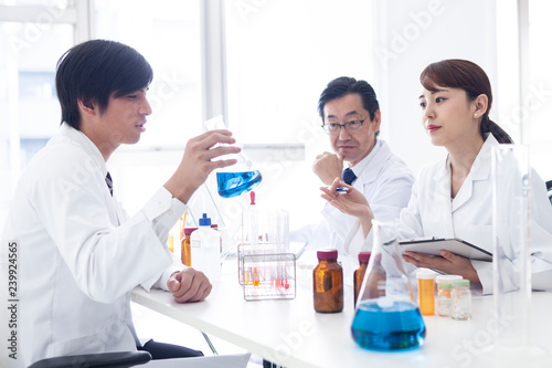 technology, chemistry, science, scientist, chemist, chemical, test tube, dropper, beaker, labcoat, business, professional, professional, future, water, goggles, study, invention, development, safe, creation, reform, training, laboratory, japanese, asian, lovely, young, office, corporation, corporate, staff, contemplate, employee, work, analysis, exam, suit, medical care, health, meeting, laboratory, man, tablet, personal computer, medicine, experiment
