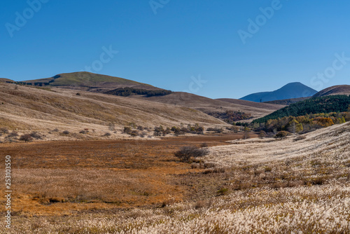 fall, view, plateau, landscape, sky, nature, mountain, grass, field, wood, green, japan