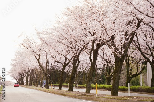 cherry blossom, flower, full bloom, plant, spring, tunnel, landscape, nature, transportation, way, car, view, lovely, pretty, sky, white, pink, morning, daytime, evening, japan, countryside, branch, sunset