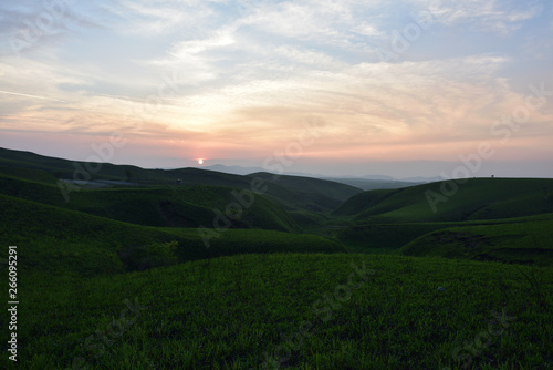 landscape, sky, mountain, nature, sunset, green, hill, blue, cloud, grass, summer, forest, sunrise, panorama, sun, morning, wood, morning, meadow, fall, field, countryside, japan, kyushu, aso, view, hill, sunny, evening, daybreak, meadow, route, way