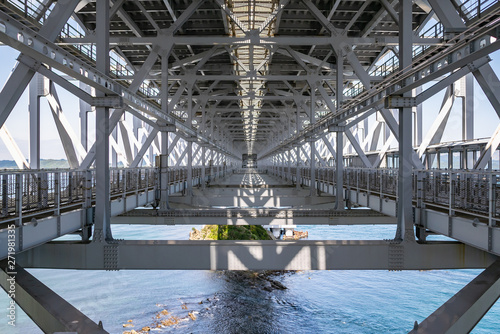 bridge, pier, structure, architecture, construction, building, way, expressway, suspension bridge, shikoku, sea, beach, neck, eddy, showplace, national park, lookout, seto inland sea, island, journey, travel, japan, view, port, seaport, tide, tour tourism, tourist attraction, route, landscape, high speed