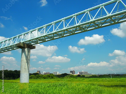 bridge, infrastructure, pier, construction, grove, sky, blue skies, sunny, pipeline, japan, copy space
