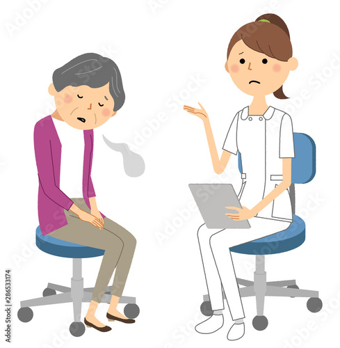 illustration, illustration, japanese, people, nurse, woman, nurse, care, nurse, hospital, clinic, clinic, medical care, welfare, uniform, labcoat, work, office, business, white background, care, health, vector, aged, aged, patient, babushka, nanny, exam, inquiry, counseling, inspection, version, consultation, conversation, treatment, prescription, trouble, marode, ward, sigh, seriousness, young