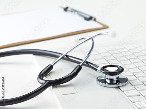 stethoscope, white background, medical care, hospital, marode, unmanned, white, cardiogram, keyboard, personal computer, personal computer, cardiac, heart rate, paper, light, auscultation, doctor, doctor, exam, place, black, image, photo, up, closeup, macro, laptop, notebook, monitor