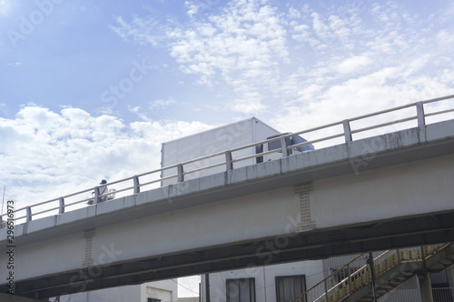 truck, lifeline, transport, highway, inflation, architecture, building, japan, view, bridge, pier, look up, way, city, crossover, blue skies, landscape, expressway