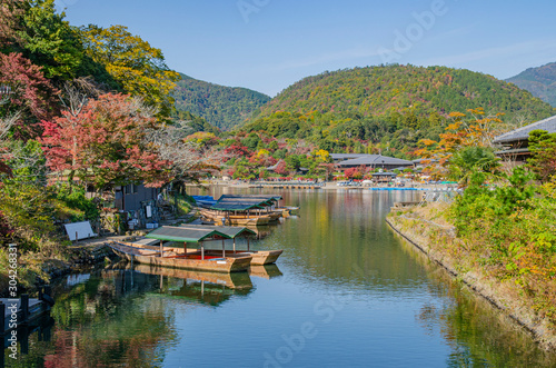 kyoto, fall, kyoto, showplace, japan, tourist attraction, river, tour tourism, travel, asia, city landscape, vivid, stream, landscape, boat