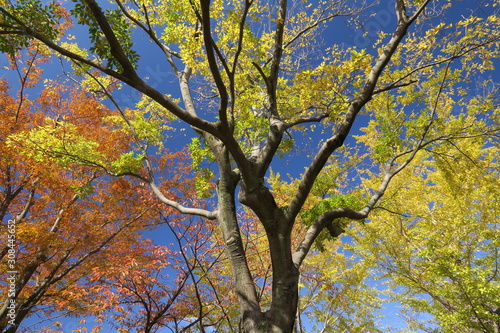 wood, deciduous tree, leaf, leaf, fall, winter, sky, blue skies, sunny, copy space, japan, look up