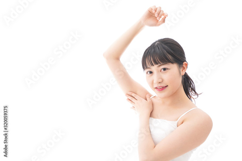 stinky, bathe, marode, poor health, dirt, clinic, care, cream, sweat, area, zone, hospital, consultation, trouble, check, measure, shower, disinfect, occasion, puberty, surgery, treatment, clean, doctor, dissolution, stress, solution, cosmetic, young, woman, asian, japanese, chinese, korean, white background, copy space