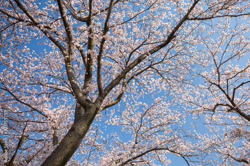 青空に映える満開の桜の花