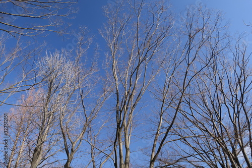 朝の公園の枯れ木と早春の青空