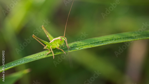 katydid, grasshopper, insect, leaf, waterdrop, wildflower, plant, landscape, nature, summer