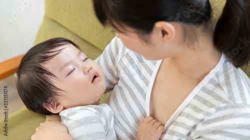baby, mother, people, woman, family, family, mother, mother, mother, nap, go to bed, rest, sleep, toddler, child rearing, hug, cuddle, baby, smile, children, homemaker, live, relax, lifestyle, portrait, japanese, asian, chinese