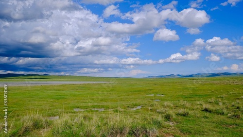 mongolia, grass, meadow, grazing, blue skies, cloud, immensity, asia, overseas, travel, nature, prairie, animal, grass, outdoors, farm, farm, meadow