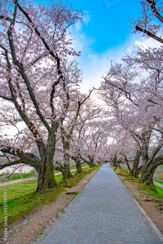 full bloom, cherry blossom, kyoto, levee, pink, japan, landscape, tour, celebrate, blue skies, cloud, spring, sakura, hanami, tourist attraction, travel, journey, river, space, nature, spot, showplace, sidewalk, april, pink, morning