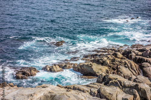sea, water, coast, beach, wave, rock, nature, blue, landscape, coastline, sky, surf, shore, pitted, cliff, summer, seascape, rocky, foam, travel, japan, miyazaki