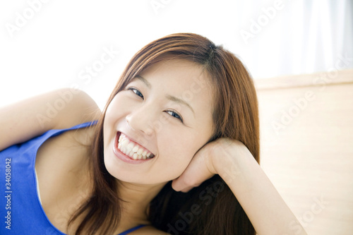 person, people, man, asian, japanese, asia, orient, japan, woman, woman, indoor, indoor, lifestyle, live, alone, bed, bedchamber, portrait, smile, smile, smile, smile, smile, smile, smiling, enjoyment, emotion