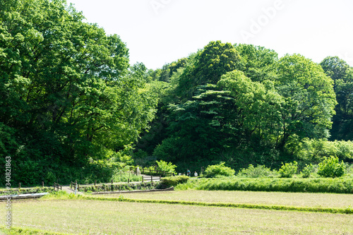 landscape, wood, nature, grass, sky, green, forest, meadow, park, field, blue, countryside, lawn, cloud, lovely, field, farmhouse, farming, countryside, home, japan, coppice, spring, verdure