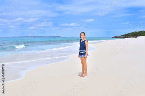 ビーチで笑う女の子(沖縄 宮古島 長間浜)