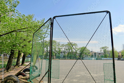 elementary school, schoolyard, background, earth, net, fence, sport, tire, wood, nature, green, sky, blue