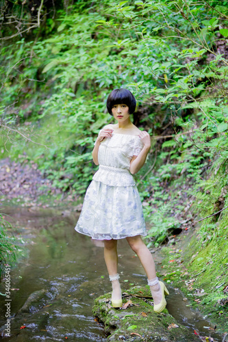 woman, japanese, mountain, stream, nature, young, hike, summer, outdoors, travel, field, landscape, lovely, person, happy, beauty, freedom, fashion, dress, eastern, asia, spring, countryside, brunette, stream, stream